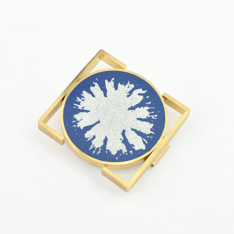 Gold plated brass, resin with mineral micro-aggregates, enamel. Nickel free.
