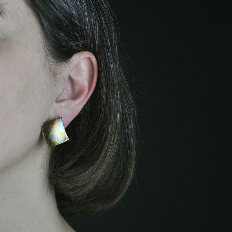 Ottone e argento 925, foglia d'oro ossidata. Nichel free.